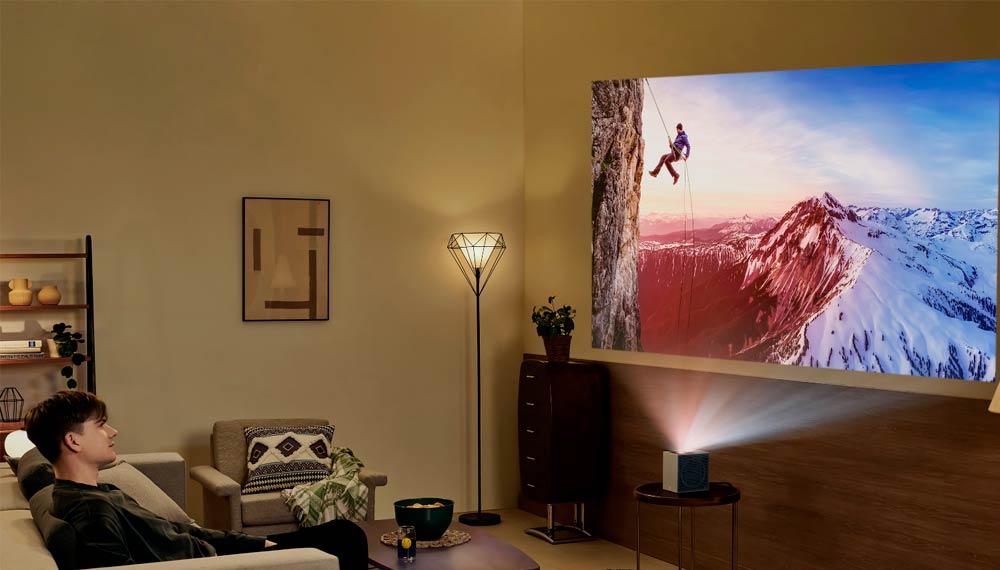 El CineBeam S produce impresionantes imágenes 4K, ajustables en tamaño de 40 a 100 pulgadas, que son igual de nítidas y claras tanto de día como de noche. Su avanzado sistema de láser RGB ofrece una cobertura del 154% de la gama de colores DCI-P3, lo que garantiza una reproducción precisa del color que ayuda a preservar la intención creativa detrás de cada contenido. Con un brillo de 500 lúmenes ANSI y una relación de contraste de 450,000:1, asegura negros profundos y colores ricos y realistas bajo cualquier condición de luz ambiental.
