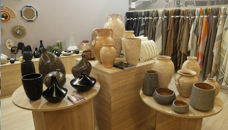 Las empresas asociadas al gremio exportador presentes fueron Raymisa, Allpa, R.Berrocal, Textialpaca, Jireh El Único, Royal Knit y Sumaq Qara, que exhibieron cerámica utilitaria y decorativa –como la cerámica de Chulucanas–, textiles para el hogar, entre ellos mantas y cojines, cestería y espejos.